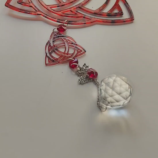 Fabricado en acrílico 3mm, cuenta con cristales que a contra luz del sol se visualizan sus colores armonizando el lugar donde se sitúe.