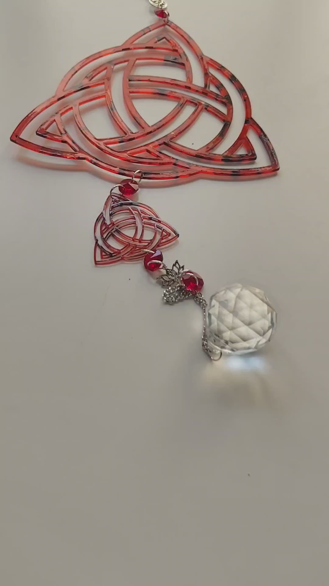 Hola gusto en saludarles, hoy traemos este hermoso colgante con temática de la triqueta o triquetra, más tarde llamada también triquel, es un símbolo de origen indoeuropeo que alude a la triple dimensión de la divinidad femenina.